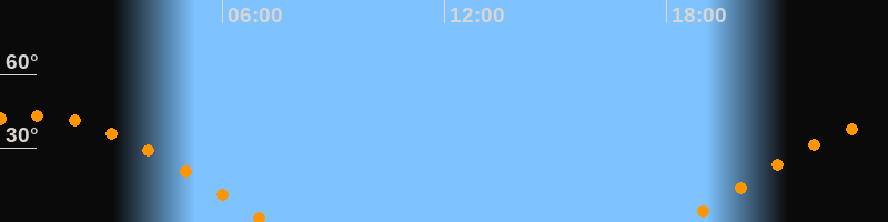 | Aufgang | 18:27 Uhr im Osten (αAz = 83°) |