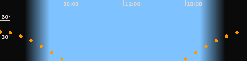| Untergang | 06:24 Uhr im Westen (αAz = 277°) |
