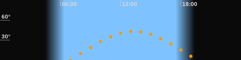 | Höchster Stand (Kulmination) | 13:17 Uhr (h = 43,3°) |