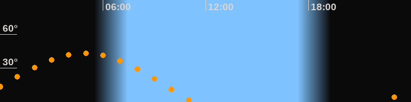 | Höchster Stand (Kulmination) | 04:53 Uhr (h = 43,3°) |