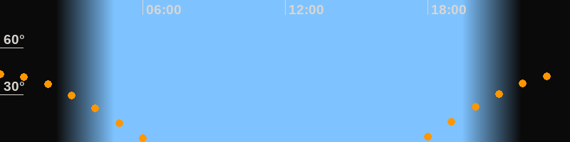 | Aufgang | 17:32 Uhr im Osten (αAz = 83°) |