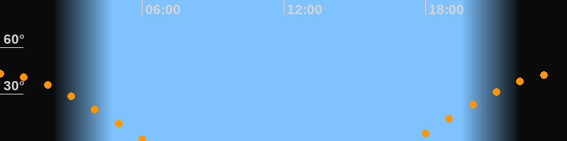 | Untergang | 06:13 Uhr im Westen (αAz = 277°) |