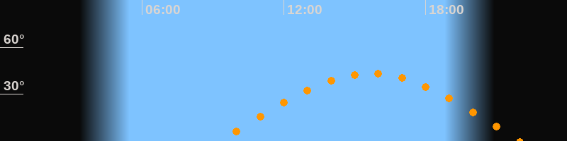 | Höchster Stand (Kulmination) | 15:39 Uhr (h = 43,3°) |