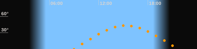 | Höchster Stand (Kulmination) | 15:20 Uhr (h = 43,3°) |