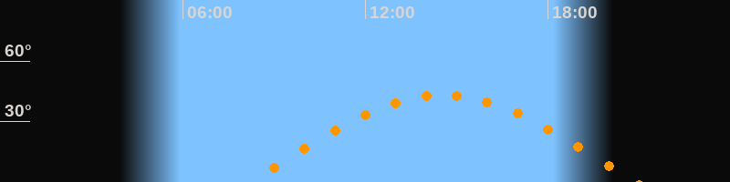 | Höchster Stand (Kulmination) | 14:32 Uhr (h = 43,3°) |