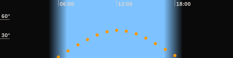 | Höchster Stand (Kulmination) | 12:07 Uhr (h = 43,3°) |