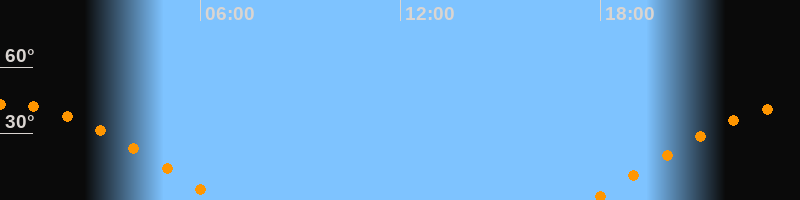 | Aufgang | 17:45 Uhr im Osten (αAz = 83°) |