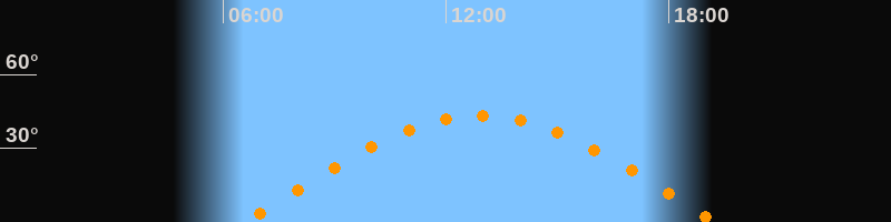 | Höchster Stand (Kulmination) | 12:55 Uhr (h = 43,3°) |