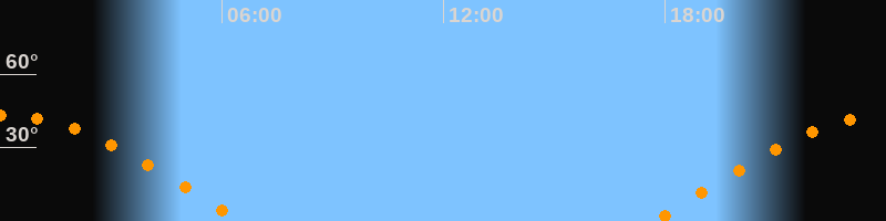 | Untergang | 06:30 Uhr im Westen (αAz = 277°) |