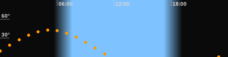 | Höchster Stand (Kulmination) | 05:16 Uhr (h = 42,7°) |