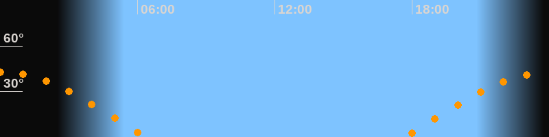 | Aufgang | 17:40 Uhr im Osten (αAz = 83,9°) |