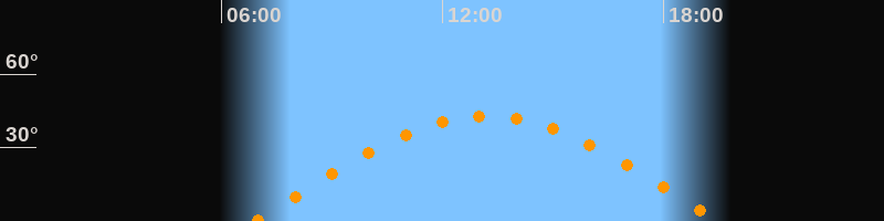 | Höchster Stand (Kulmination) | 13:12 Uhr (h = 42,7°) |