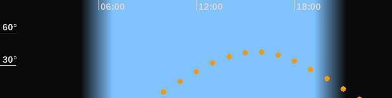 | Aufgang | 09:18 Uhr im Osten (αAz = 83,9°) |