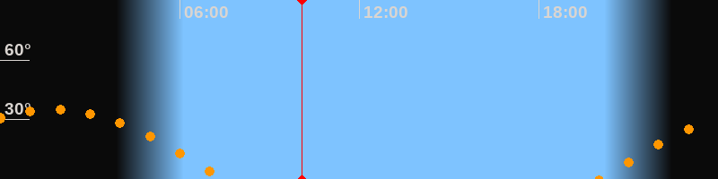 | Untergang | 07:30 Uhr im Westen (αAz = 264,3°) |