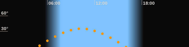 | Höchster Stand (Kulmination) | 10:20 Uhr (h = 35,2°) |