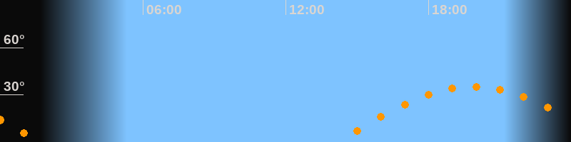 | Untergang | 01:35 Uhr im Westen (αAz = 264,3°) |