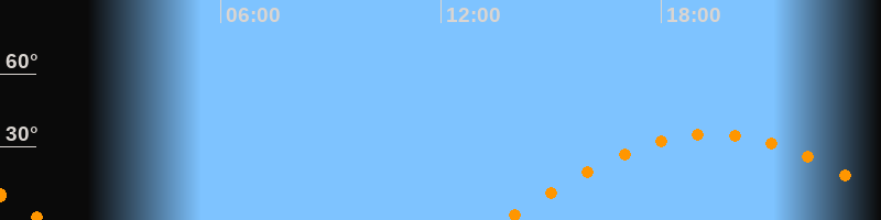 | Untergang | 01:08 Uhr im Westen (αAz = 264,3°) |