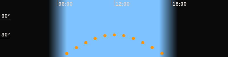 | Höchster Stand (Kulmination) | 12:00 Uhr (h = 35,2°) |