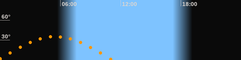 | Untergang | 11:12 Uhr im Westen (αAz = 264,3°) |