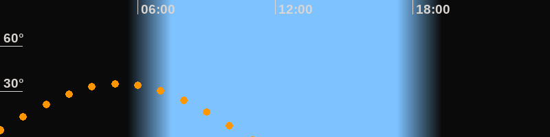 | Untergang | 10:53 Uhr im Westen (αAz = 264,3°) |