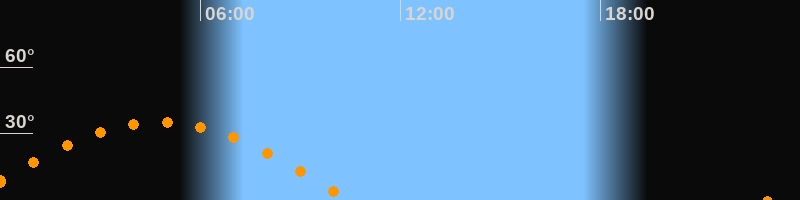 | Untergang | 10:28 Uhr im Westen (αAz = 264,3°) |