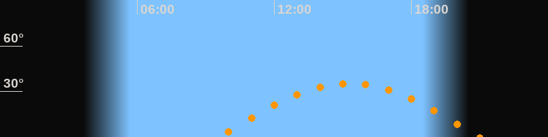 | Aufgang | 09:33 Uhr im Osten (αAz = 95,7°) |