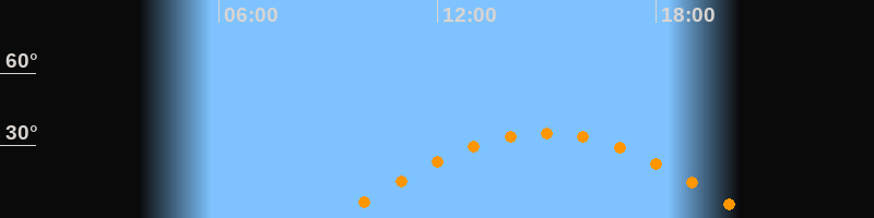 | Aufgang | 09:14 Uhr im Osten (αAz = 95,7°) |