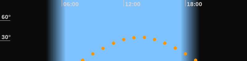 | Höchster Stand (Kulmination) | 13:30 Uhr (h = 35,2°) |