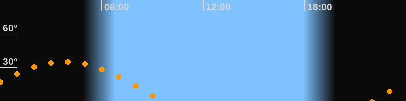 | Aufgang | 22:01 Uhr im Osten (αAz = 95,7°) |