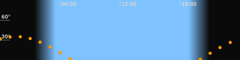 | Untergang | 07:17 Uhr im Westen (αAz = 264,3°) |