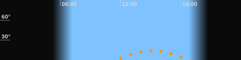 | Aufgang | 11:29 Uhr im Südosten (αAz = 131,8°) |
