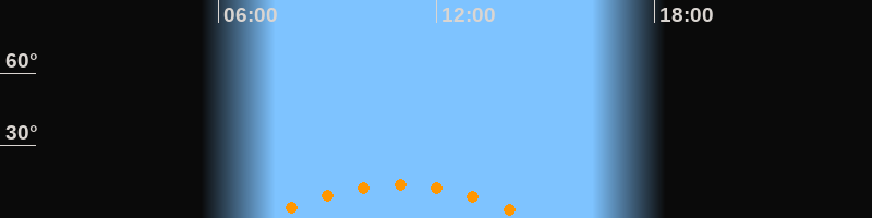 | Aufgang | 07:15 Uhr im Südosten (αAz = 131,8°) |