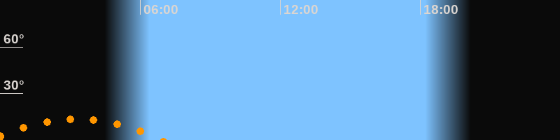 | Aufgang | 23:31 Uhr im Südosten (αAz = 131,8°) |