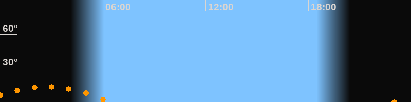 | Untergang | 06:23 Uhr im Südwesten (αAz = 228,2°) |