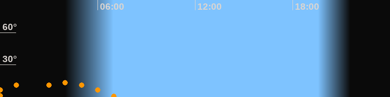 | Untergang | 07:11 Uhr im Südwesten (αAz = 228,2°) |