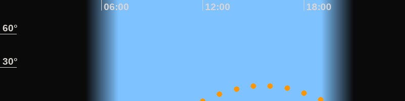 | Aufgang | 11:53 Uhr im Südosten (αAz = 131,8°) |