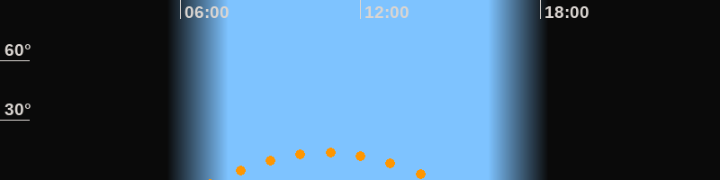 | Untergang | 14:32 Uhr im Südwesten (αAz = 228,2°) |