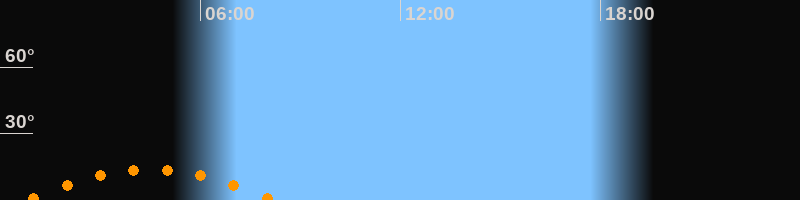 | Untergang | 08:11 Uhr im Südwesten (αAz = 228,2°) |