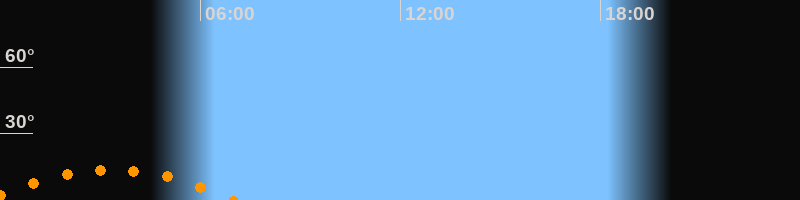 | Untergang | 07:00 Uhr im Südwesten (αAz = 228,2°) |
