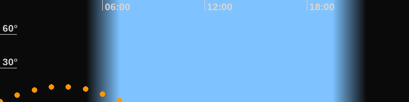 | Untergang | 07:17 Uhr im Südwesten (αAz = 228,2°) |