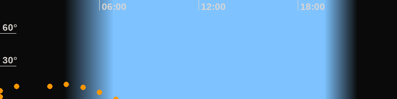 | Untergang | 07:03 Uhr im Südwesten (αAz = 228,2°) |