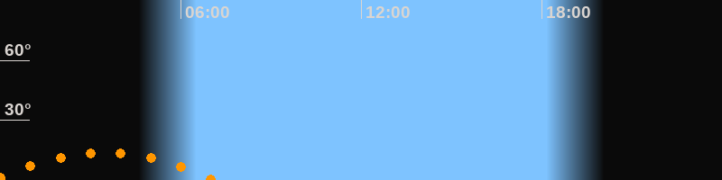 | Untergang | 07:09 Uhr im Südwesten (αAz = 228,2°) |