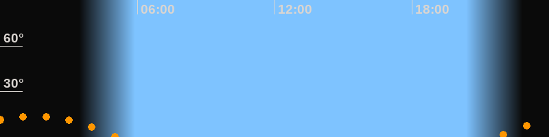 | Untergang | 05:08 Uhr im Südwesten (αAz = 228,2°) |