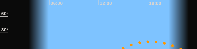 | Aufgang | 14:40 Uhr im Südosten (αAz = 131,8°) |