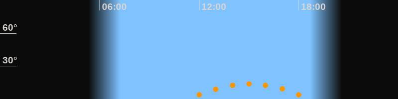 | Aufgang | 11:19 Uhr im Südosten (αAz = 131,8°) |