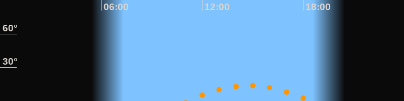 | Aufgang | 11:05 Uhr im Südosten (αAz = 131,8°) |