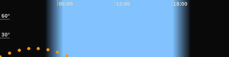 | Untergang | 07:19 Uhr im Südwesten (αAz = 228,2°) |