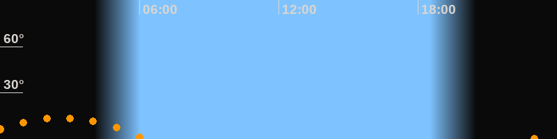 | Untergang | 06:18 Uhr im Südwesten (αAz = 228,2°) |