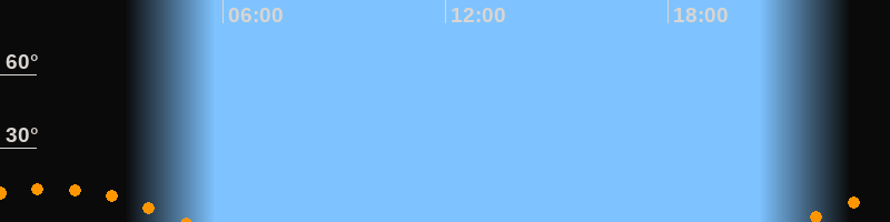| Untergang | 05:00 Uhr im Südwesten (αAz = 228,2°) |