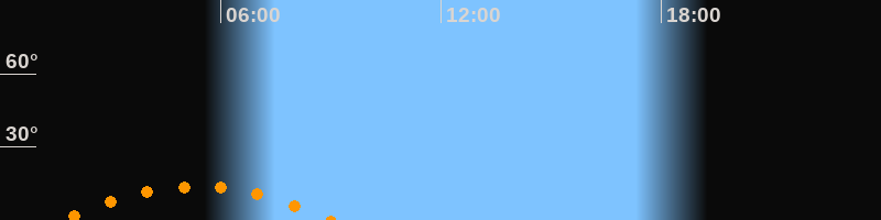 | Untergang | 09:02 Uhr im Südwesten (αAz = 228,2°) |